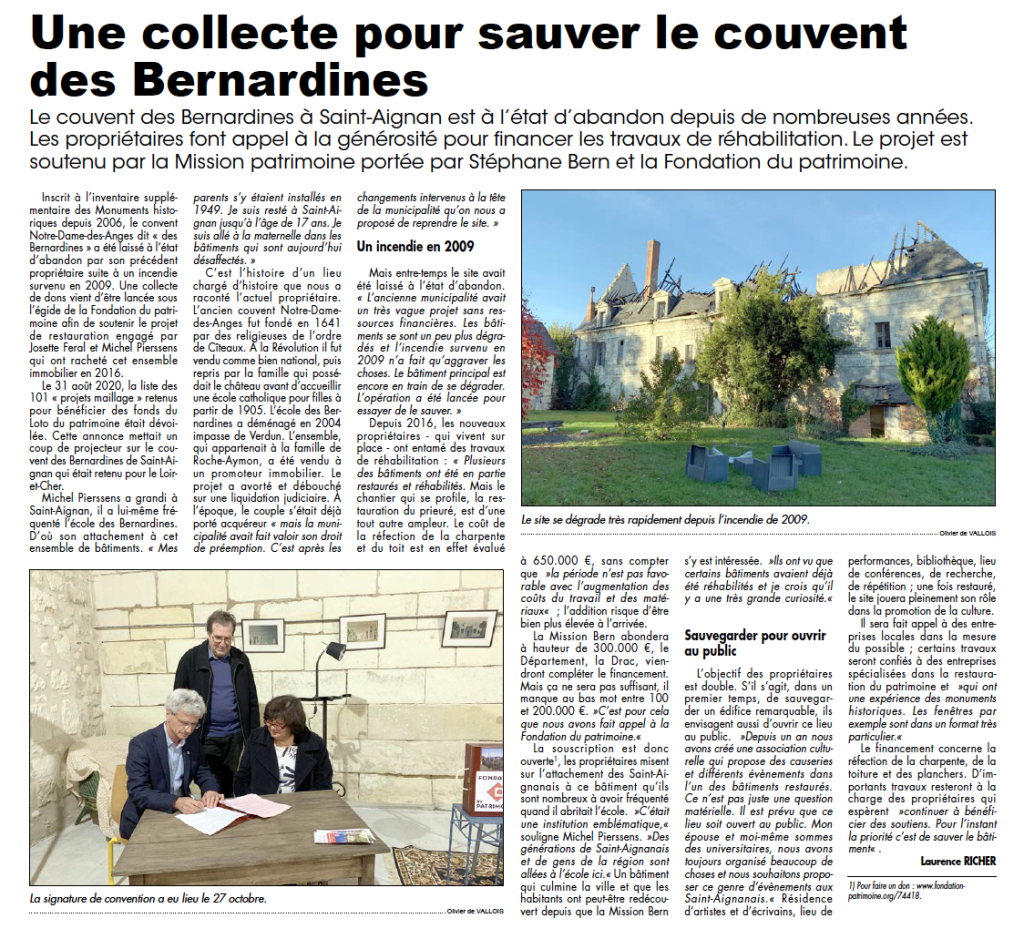 Le Prieuré des Bernardines et la Fondation du Patrimoine dans